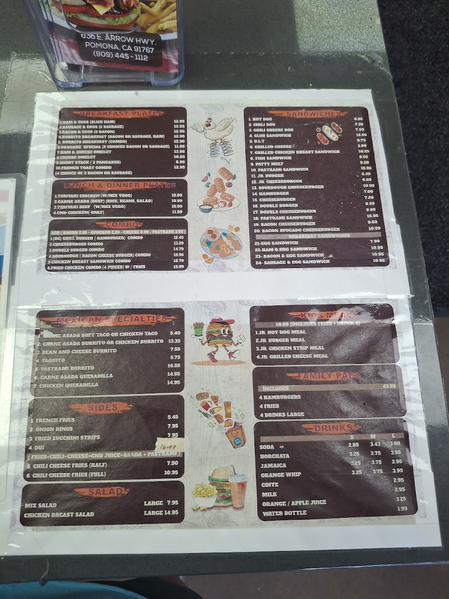 For families, the Family Pack offers great value, and the Combo Meals-like the Double Burger Combo and Chili Cheese Burger Combo-are perfect for those who want a complete meal with fries and a drink. The Kids Meal menu, featuring items like the Kids Burger and Kids Grilled Cheese, ensures younger diners can enjoy a meal tailored to their tastes.